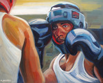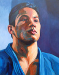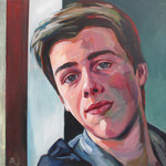 2012Portret uit een serie van 3 broers. Geschilderd in opdracht van hun ouders. De schilderijen zijn geschilderd op tentdoek. Het doek van de tent waar de familie in eerdere jaren altijd mee op vakantie ging.