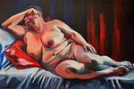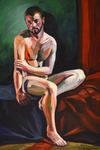 2013Mannelijk naaktmodel, zittend met rode doek.
