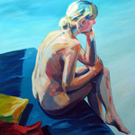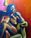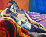 2015Naaktmodel op sofa. Nadenkend? Overpeinzend?