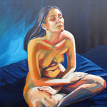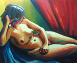 2017Portret van een kleurrijke dame. Gemaakt naar levendmodel tbij schildersgroep.